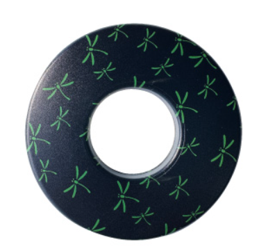 Tsuba featuring green dragonflies pattern. Reversible, durable, and suitable for shiai and keiko.