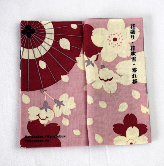 This traditional Japanese tenugui showcases a large, continuous design when fully unfolded, combining elegant  sakura flowers and a classic pagoda. A striking and balanced composition that feels dynamic yet timeless.